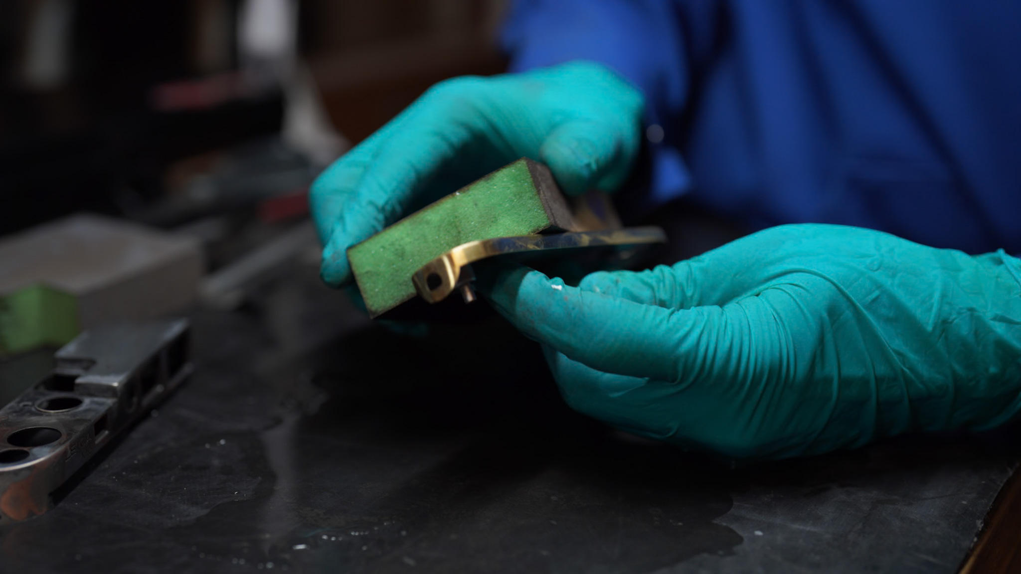 Son expertise va du réglage précis de l'obturateur à la peinture Cerakote. Il démonte entièrement l'appareil pour appliquer cette céramique polymère qui offre une finition esthétique durable et une grande résistance.