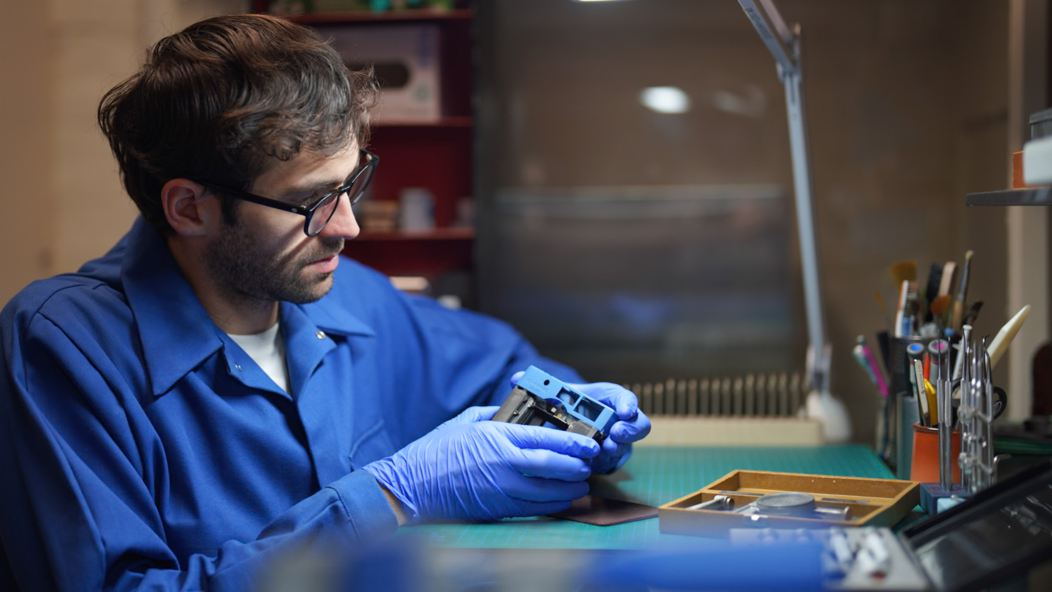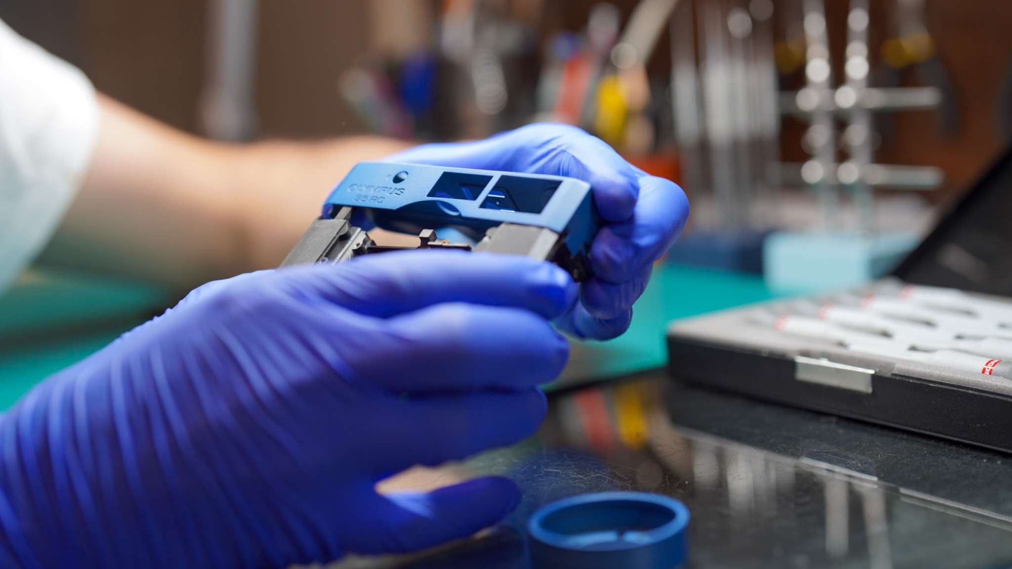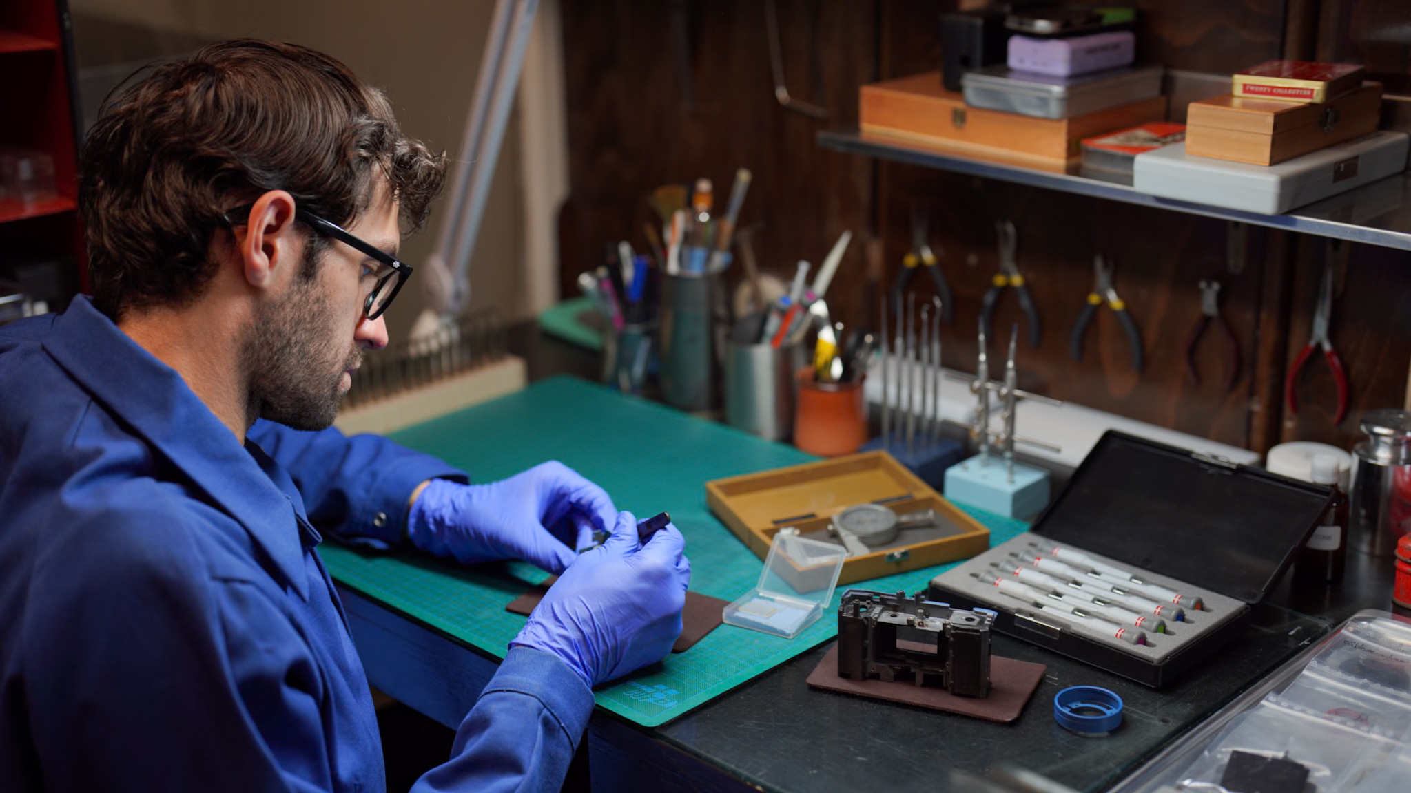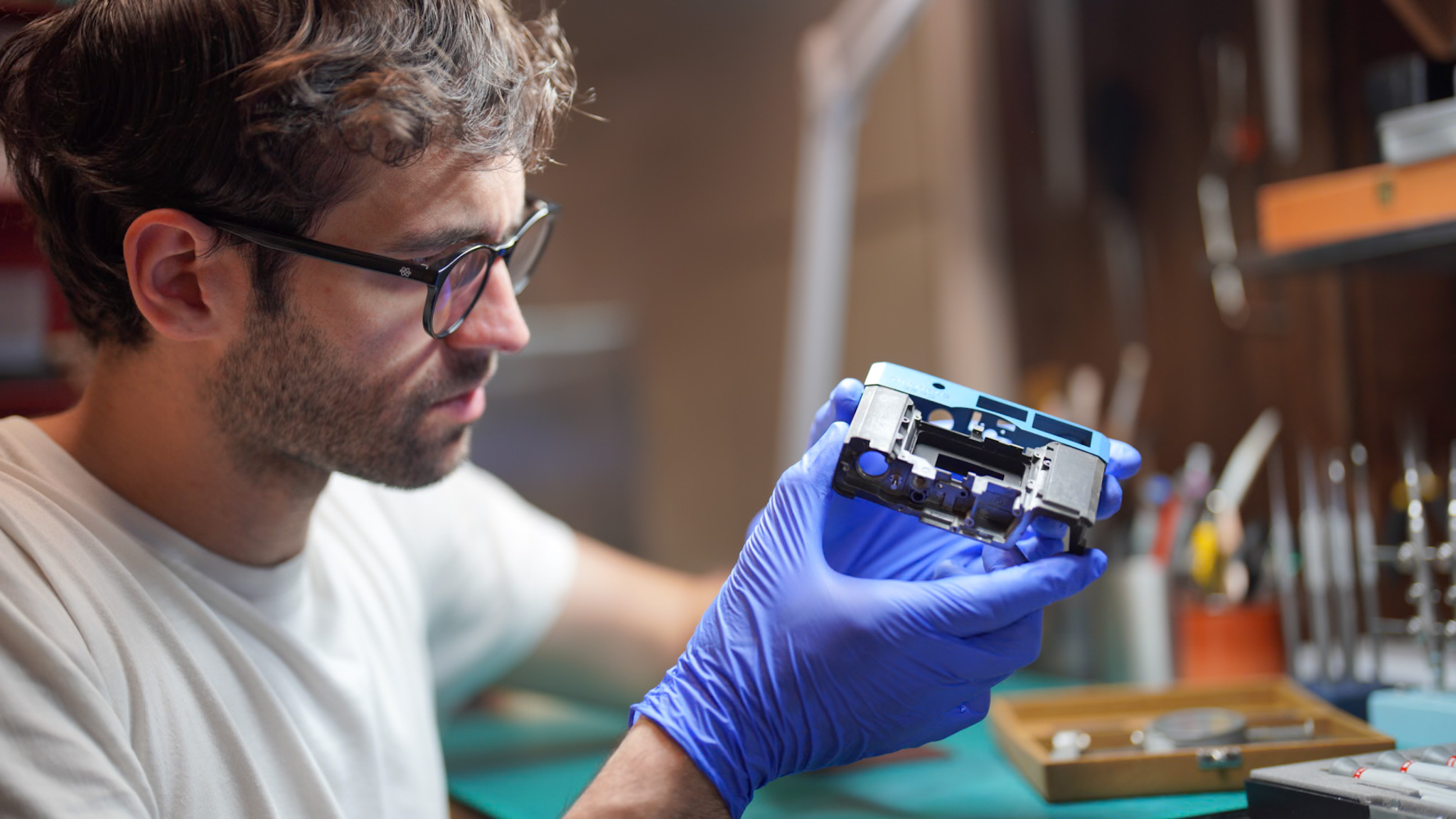 Le silence concentré de l'atelier est la première chose que l'on remarque en poussant la porte. Au milieu des outils de précision et des pièces détachées, Jimmy de Eye Out Caméra, mon voisin d'atelier, ne se contente pas de réparer : il restaure et personnalise des boîtiers photo argentiques.