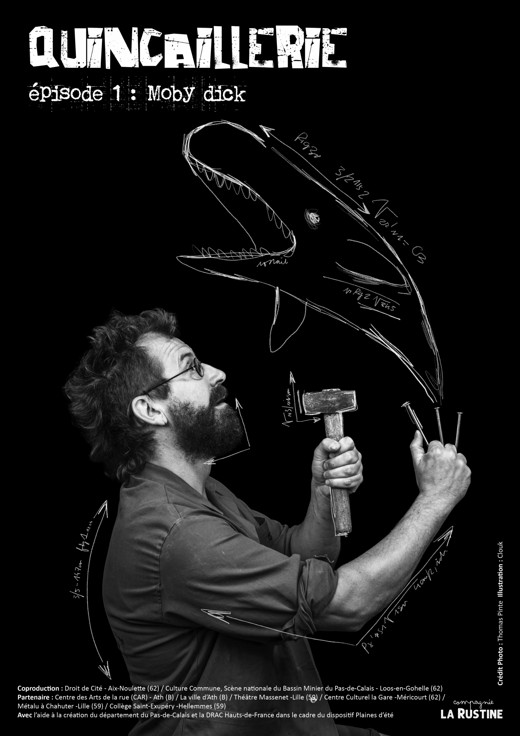 Quincaillerie – épisode 1 : Moby Dick a été produit pour la première fois à Charleville-Mézières en 2025, avec le soutien de Droit de Cité, Culture Commune, et de plusieurs scènes et partenaires des Hauts-de-France.