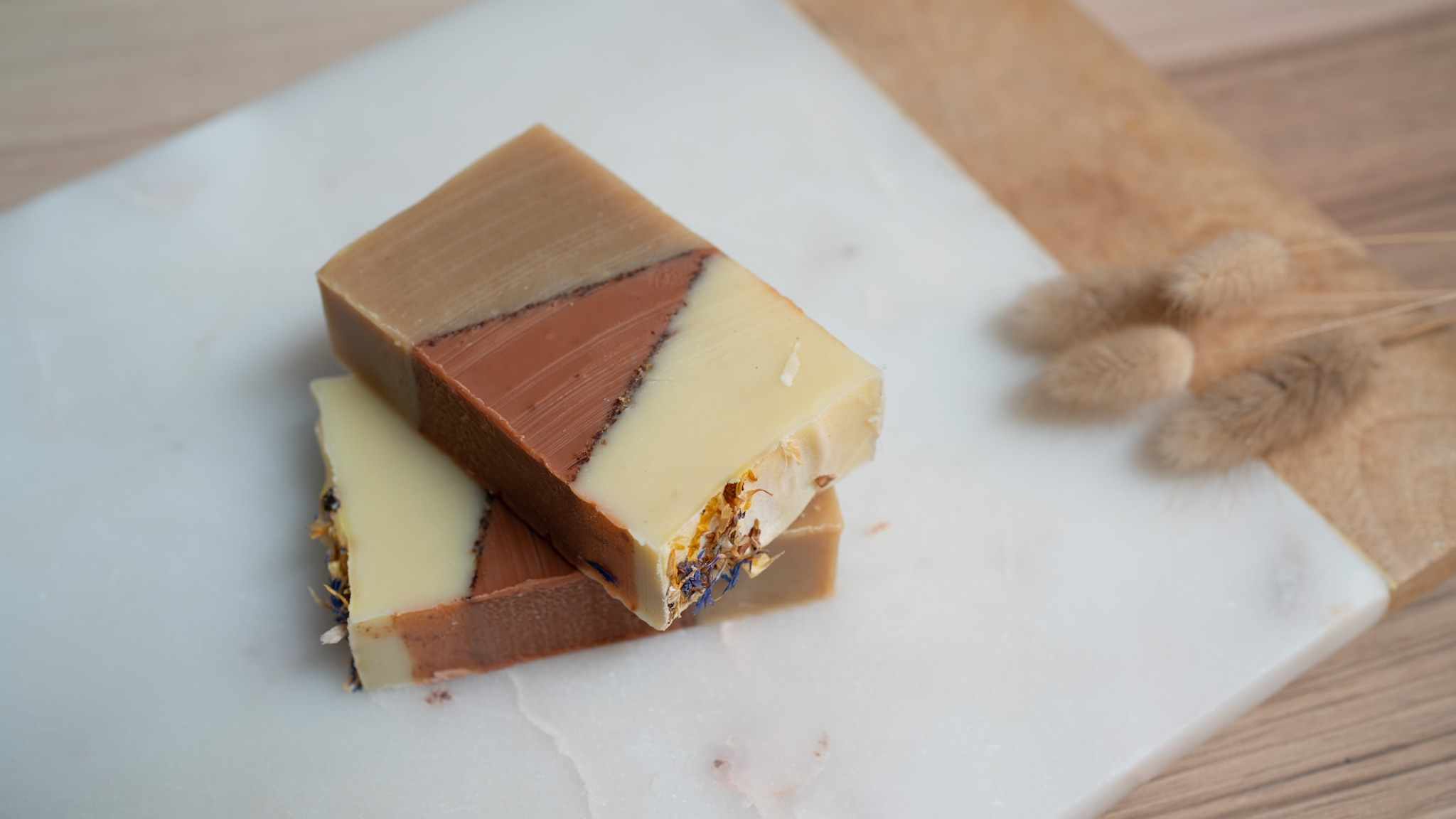 Mettre en valeur les textures et les ingrédients naturels (argiles, miel, huiles) spécifiques à la saponification à froid.